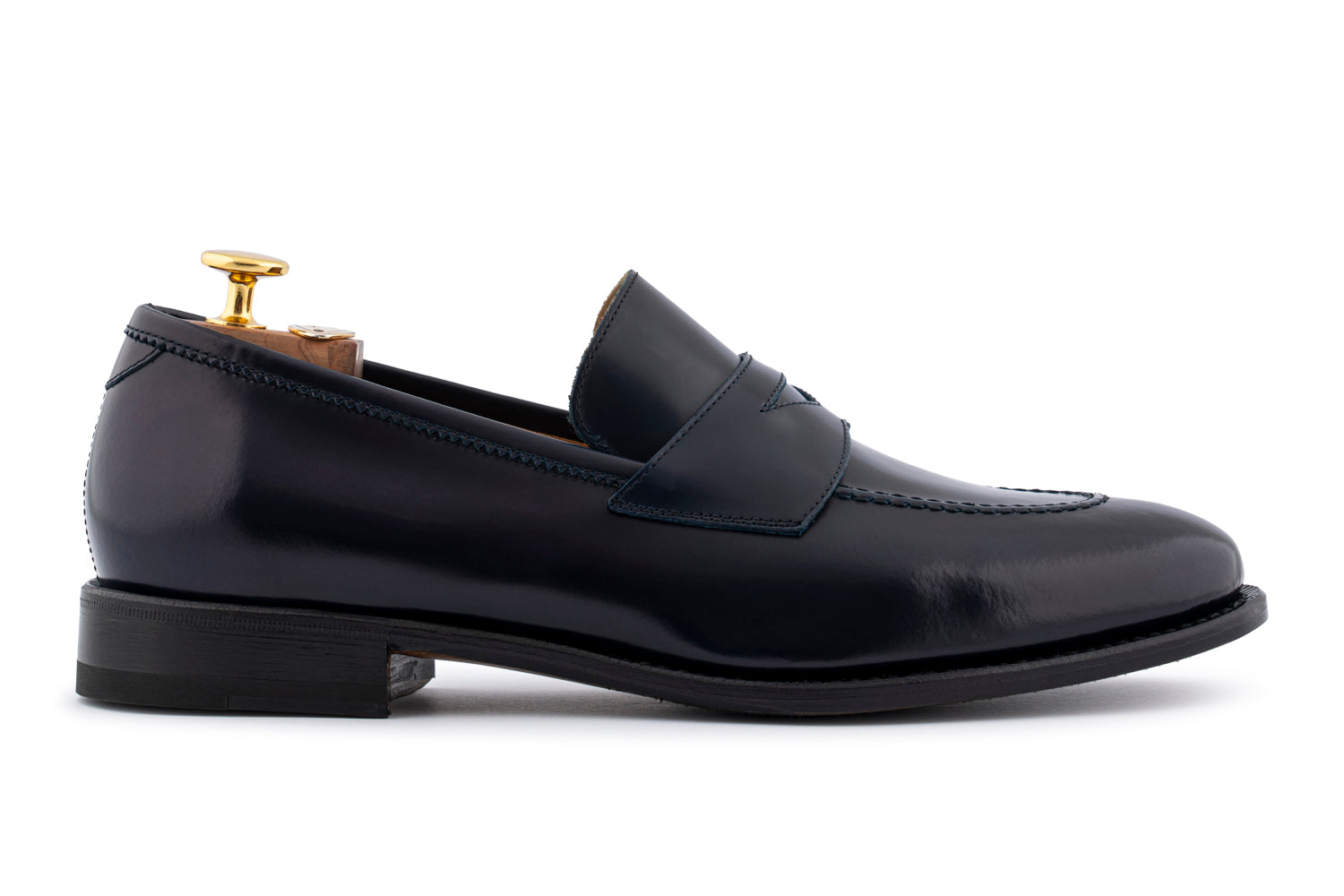 This moccasin is made of shiny brushed veal leather in the refined burgundy shade, enhanced by the leather passing and by visible seam on the edge, a distinctive sign of the Italian footwear tradition.