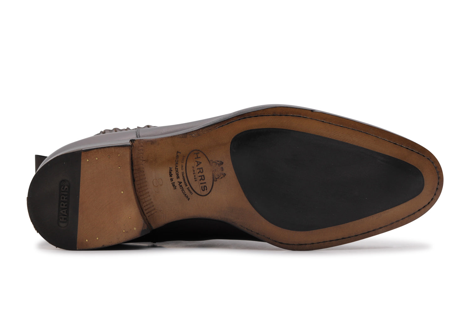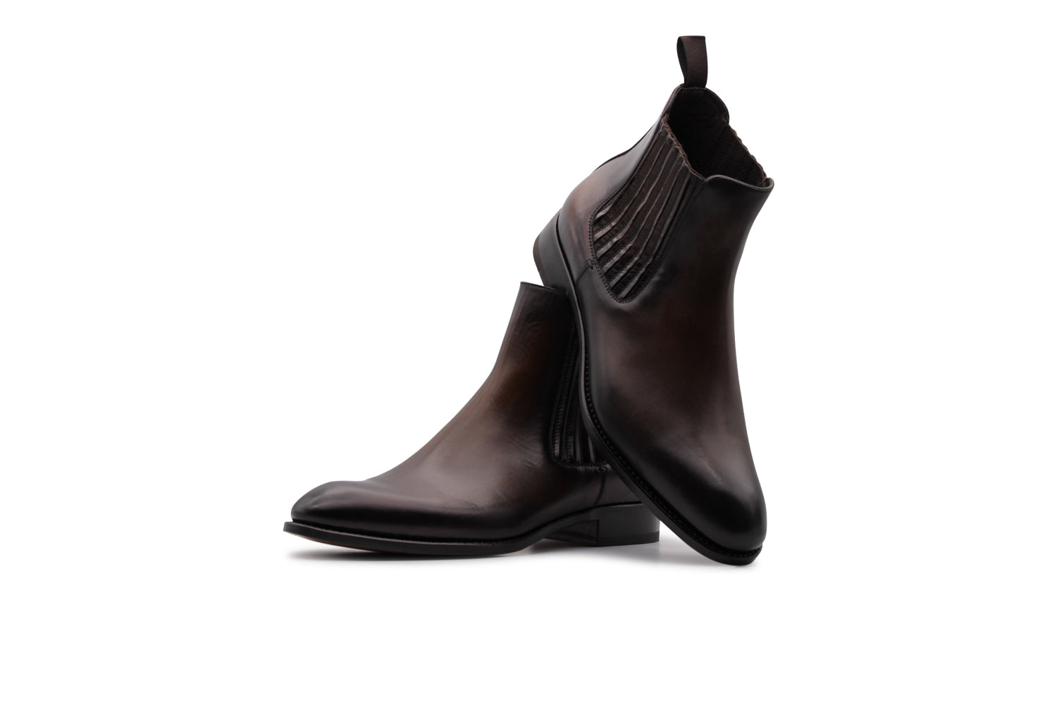 Polacchino realizzato in pelle di vitello liscia pieno fiore, dipinta a mano, che esprime l’eccellenza della tradizione artigianale italiana. L’elastico laterale fasciato in pelle assicura una calzata confortevole e un’estetica pulita ed essenziale mentre la suola in gomma, completata da guardolo cucito e lavorazione Blake Rapid, garantisce flessibilità, resistenza e comfort.