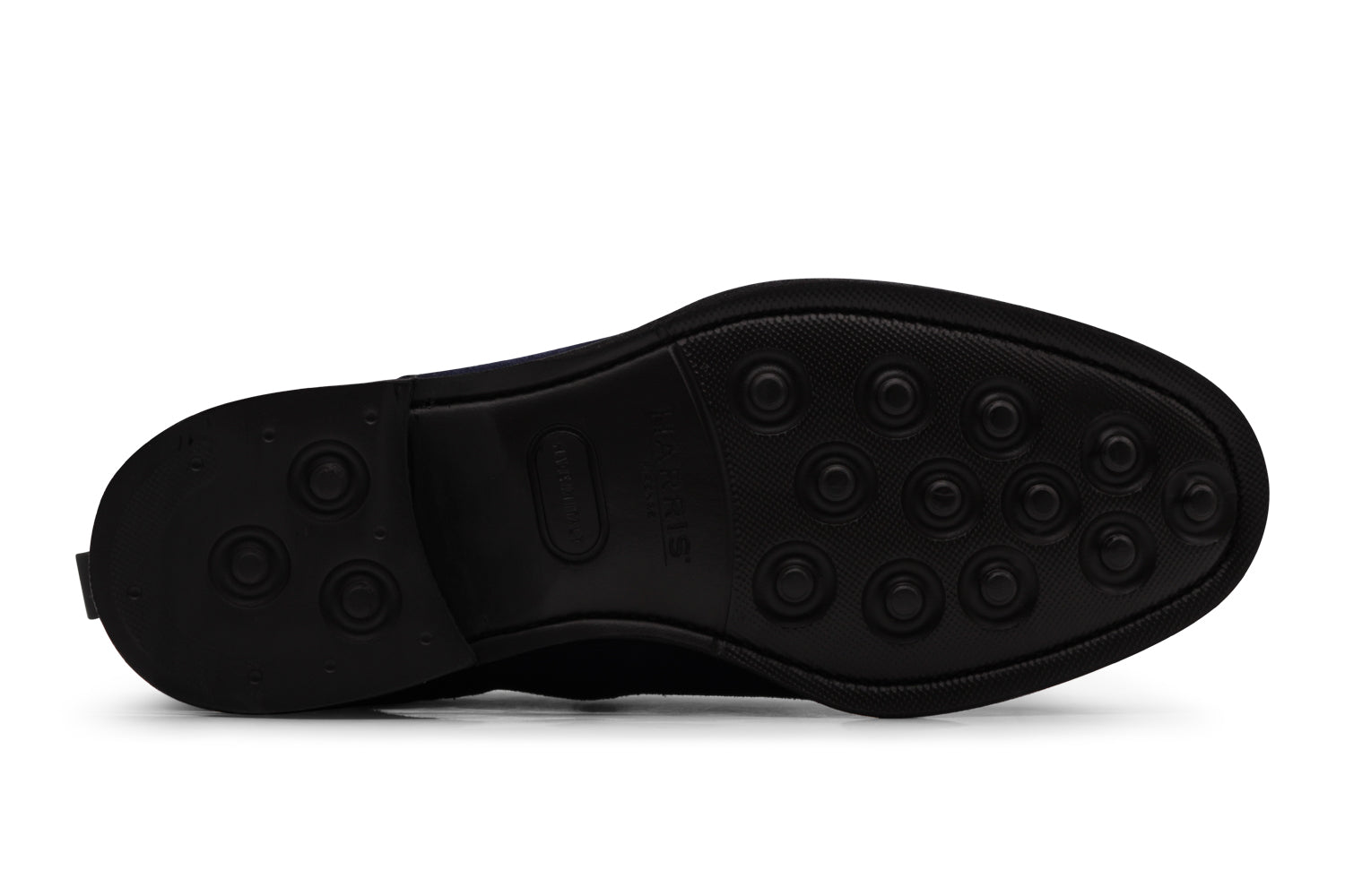 Stiefeletten aus dunkelblauem Wildleder, verziert mit handgefertigten Farbtönen. Das seitliche Gummiband erhöht die Praktikabilität, während die Dainite-Gummisohle und die Blake Rapid-Herstellung Komfort und Langlebigkeit über die Zeit garantieren.