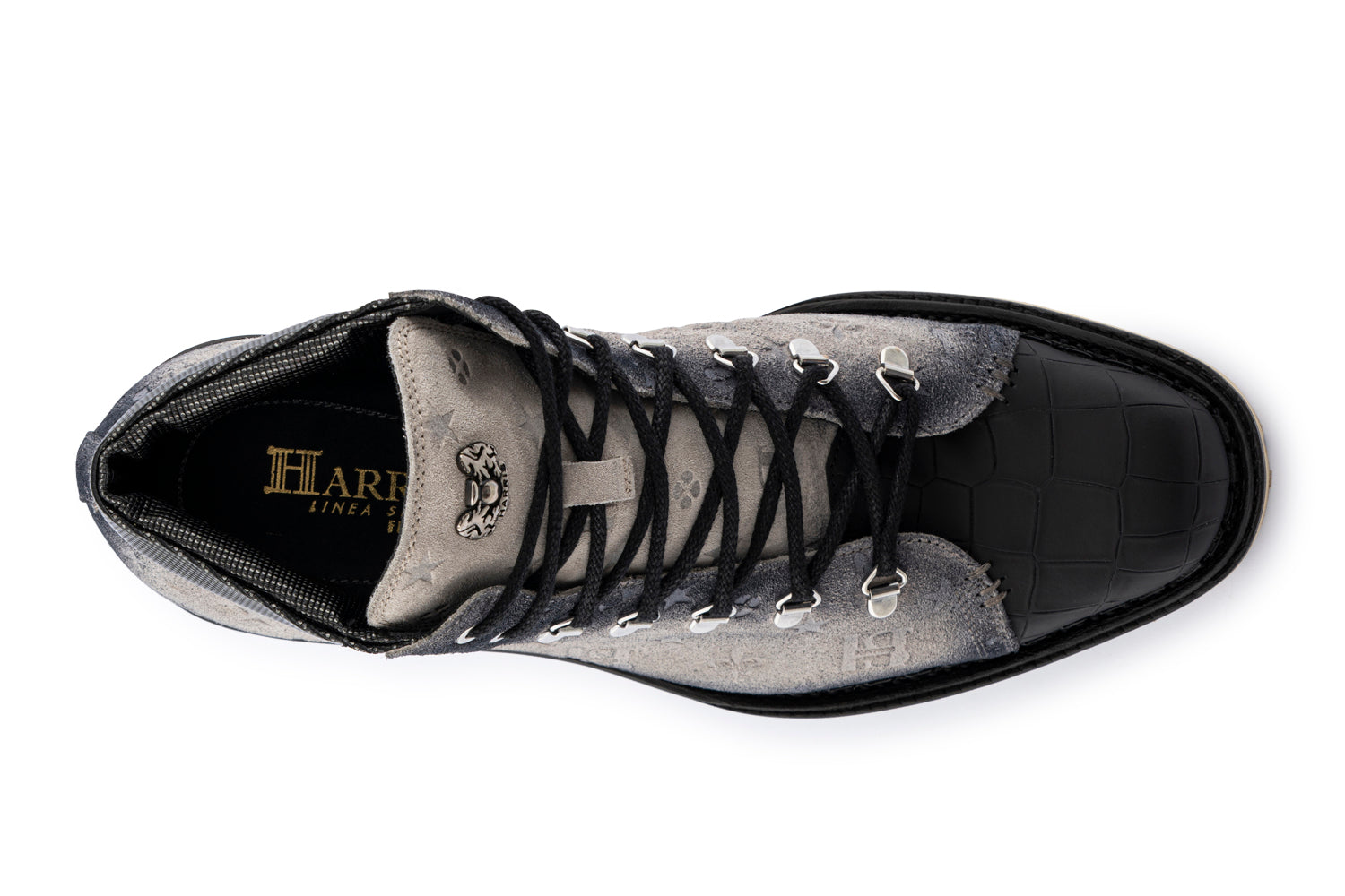 Made of Hand -shaped Harris Monogram Printed suede Harris, it is enriched with a coccorril effect smooth leather tongue. The padded edge ensures comfort while the Nickel accessories and the tires in tires complete a shoe ensuring comfort and stability