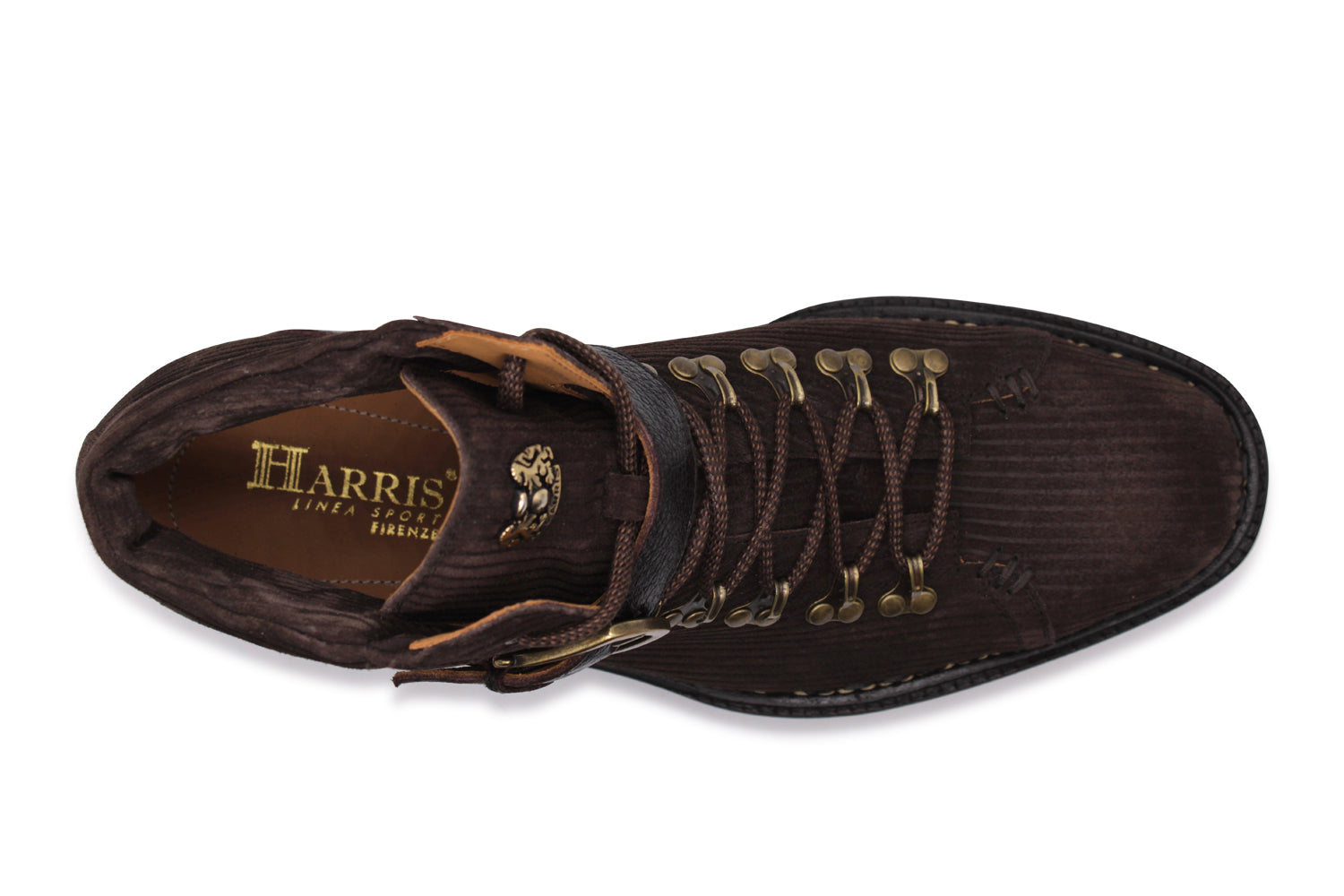 Polacchino in pelle scamosciata color testa di moro con effetto rigato, arricchito da dettagli in pelle e suola carrarmato in gomma. Il guardolo cucito e la lavorazione Blake Rapid uniscono artigianalità e spirito outdoor.