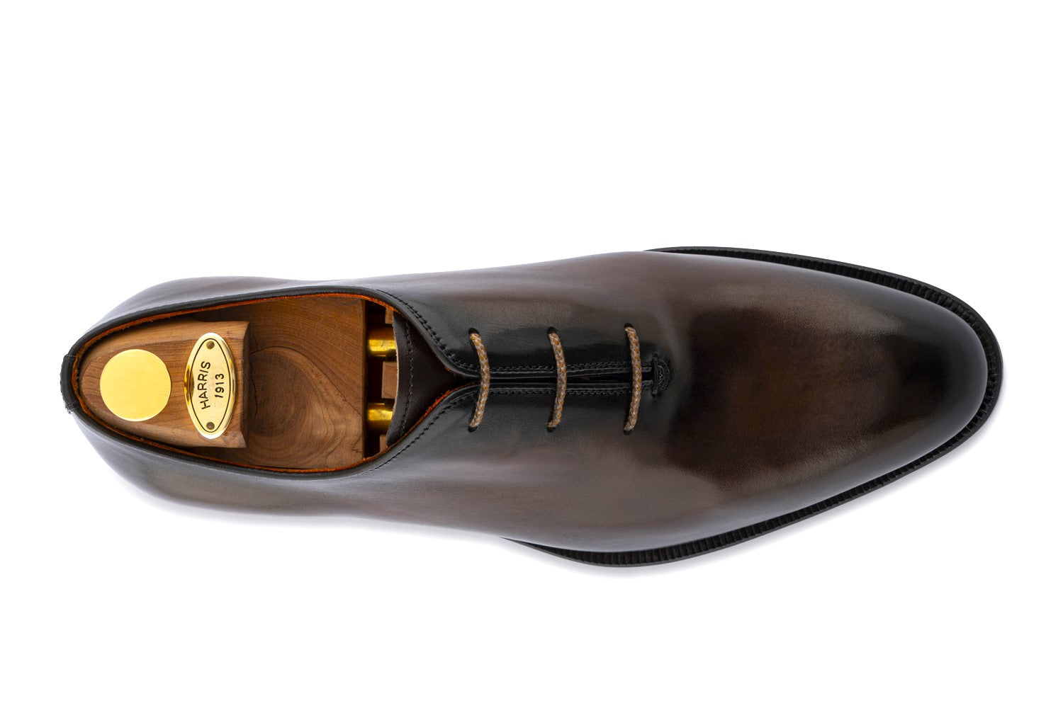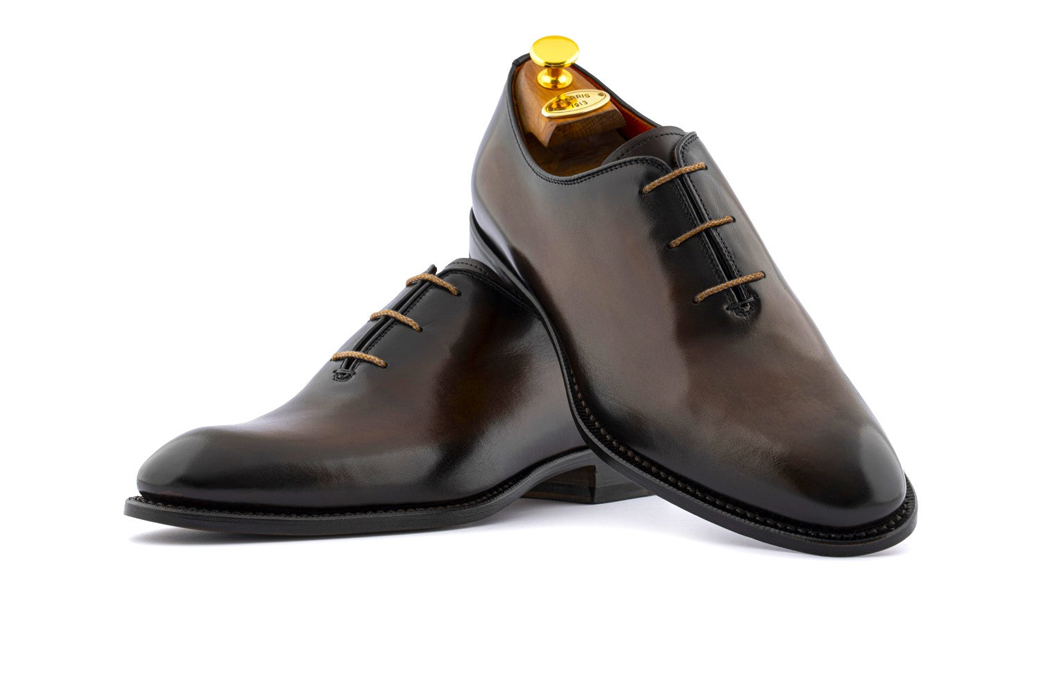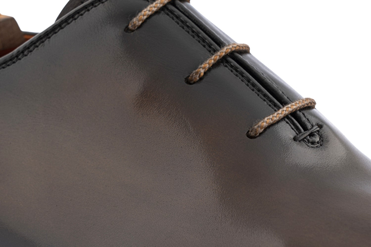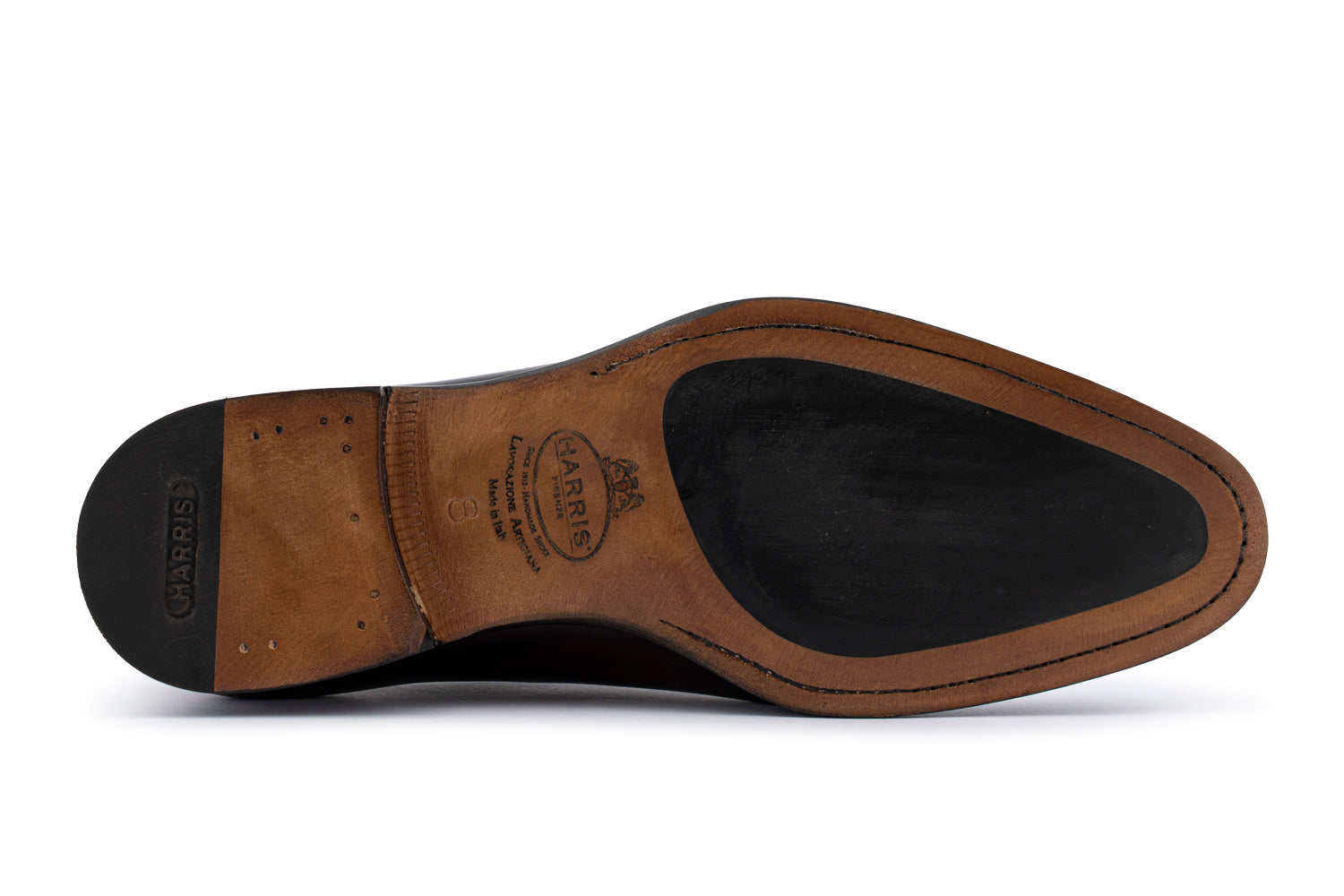 Questa francesina realizzata in pelle di vitello pieno fiore rappresenta un classico intramontabile. Sapientemente dipinta a mano per esaltare le sfumature naturali del marrone è arricchita da una lucidatura naturale che conferisce luminosità, costruita secondo la lavorazione Blake Rapid per garantire flessibilità. A completare il modello la suola in cuoio con inserto in gomma antiscivolo che assicura solidità senza rinunicare alla raffinatezza