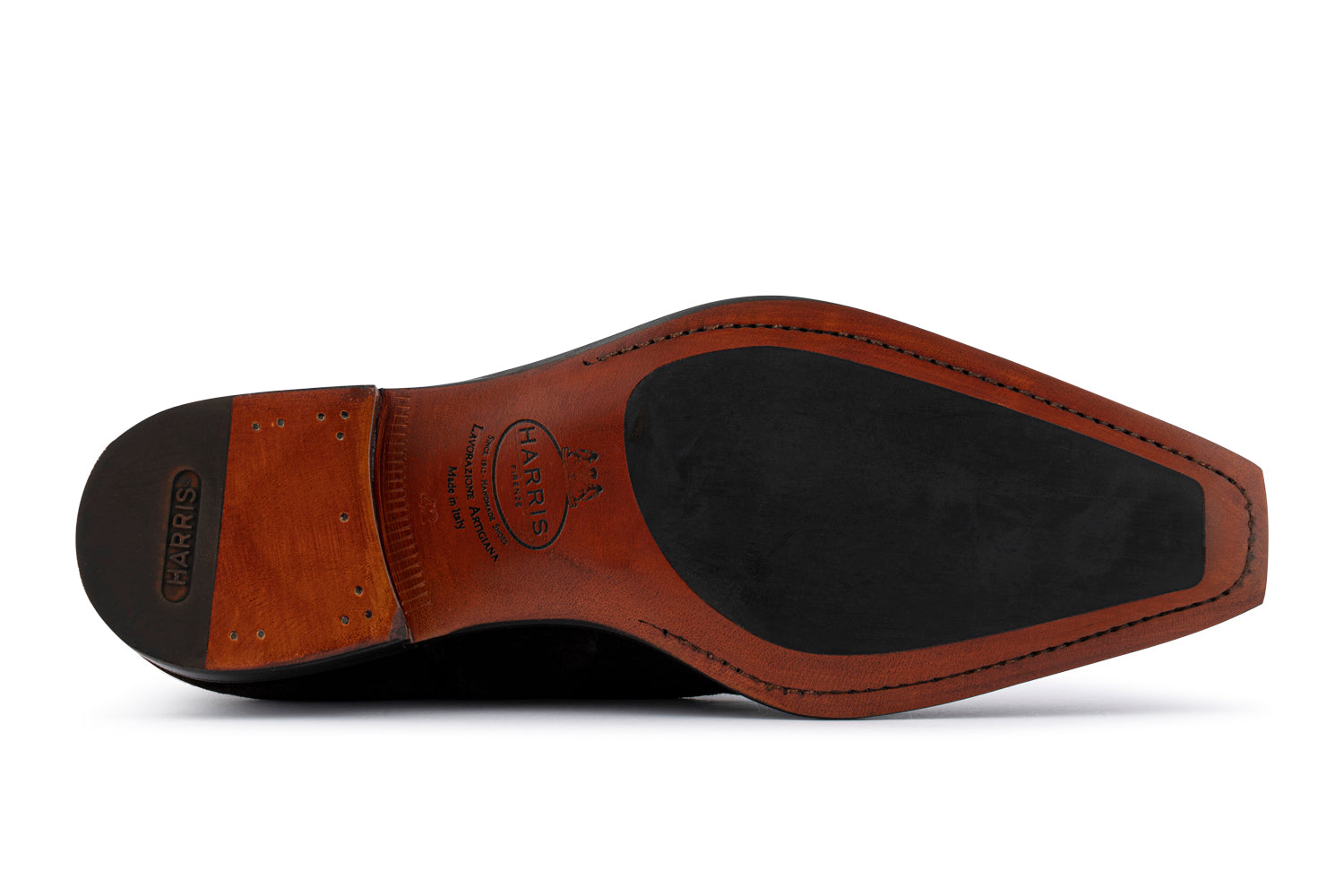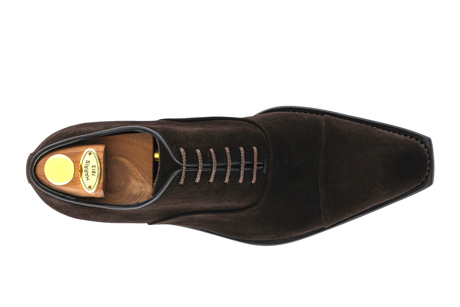 Questa francesina è realizzata in pelle scamosciata testa di moro, morbida al tatto.Un modello essenziale ma ricercato, realizzato con lavorazione Blake Rapid per garantire una struttura solida e completato dalla suola in cuoio che garantisce comfort senza rinunciare all'eleganza.